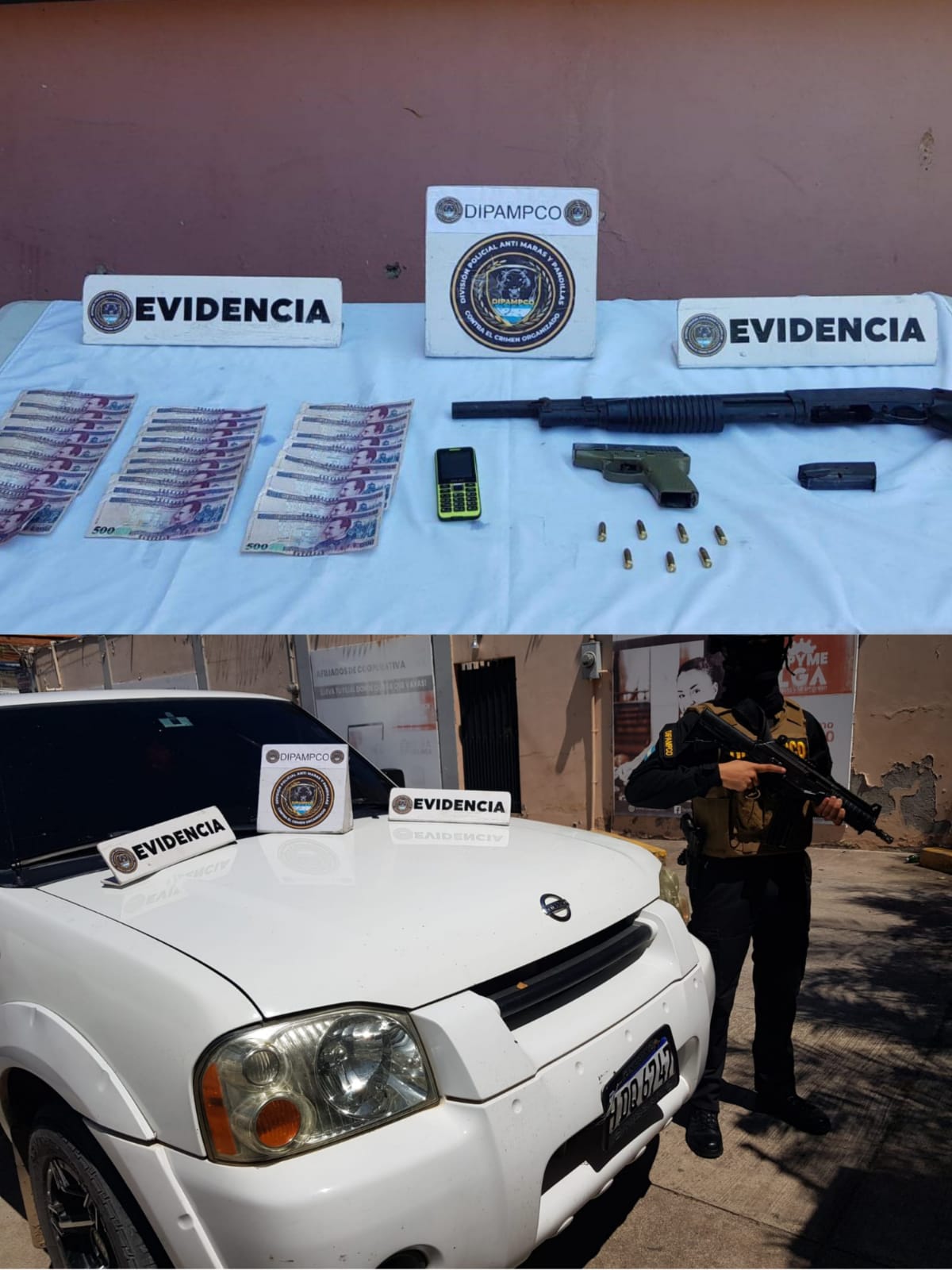 Como resultado de la intervención, se decomisaron dos armas de fuego, una escopeta y una pistola, junto con dos cargadores, siete proyectiles sin percutir, así como la suma de 14 mil lempiras en efectivo, un teléfono celular y un vehículo tipo pick-up.
