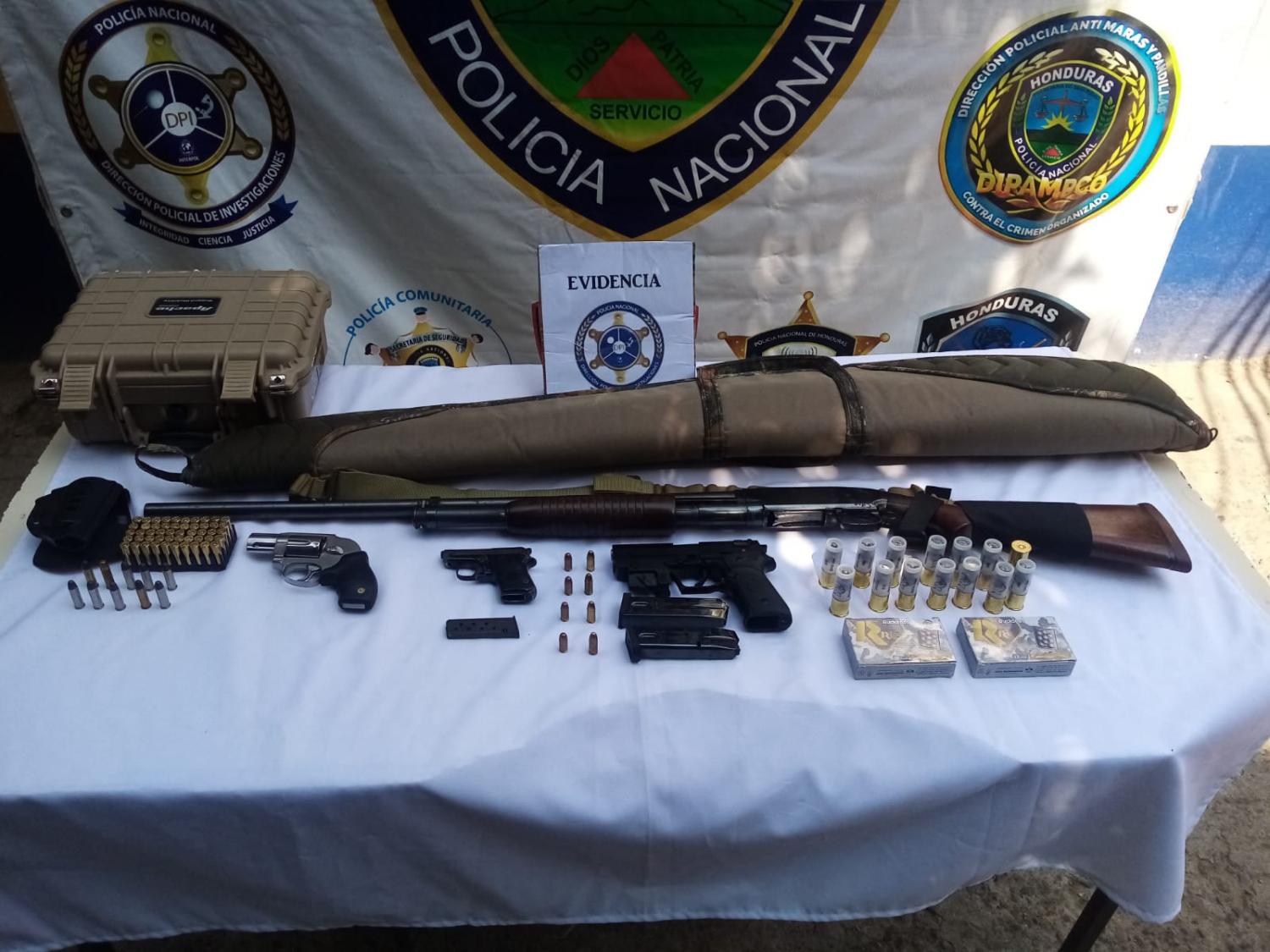 El detenido, un hondureño de 31 años, es residente de Nacaome, Valle, y se encontraba en posesión de varias armas de fuego, incluyendo una pistola calibre 9 milímetros marca Girsan, una pistola calibre 25 milímetros marca Beretta, un revólver calibre 38 milímetros marca Taurus, y una escopeta calibre 12 milímetros marca Winchester.