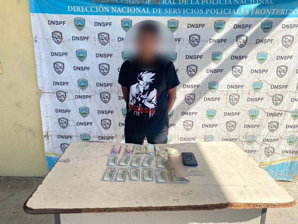 La operación policial, llevada a cabo con la colaboración del Grupo de Operaciones Especiales Tácticos (GOET), tuvo lugar en el punto de control interno de Pavana. Durante el arresto, al individuo, originario y residente de El Triunfo, Choluteca, se le incautaron 1,000 dólares, 1,290 lempiras y un teléfono celular.