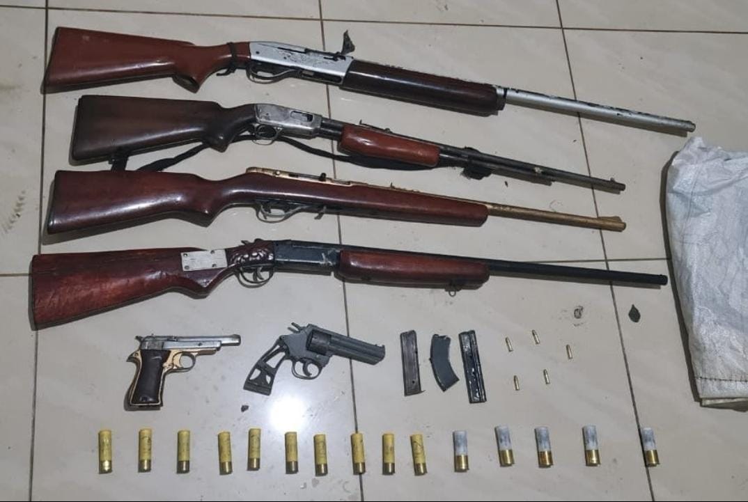 Durante estas operaciones, las autoridades decomisaron seis armas de fuego, incluyendo dos rifles, dos escopetas, un revólver y una pistola, así como munición, drogas y dinero en efectivo.