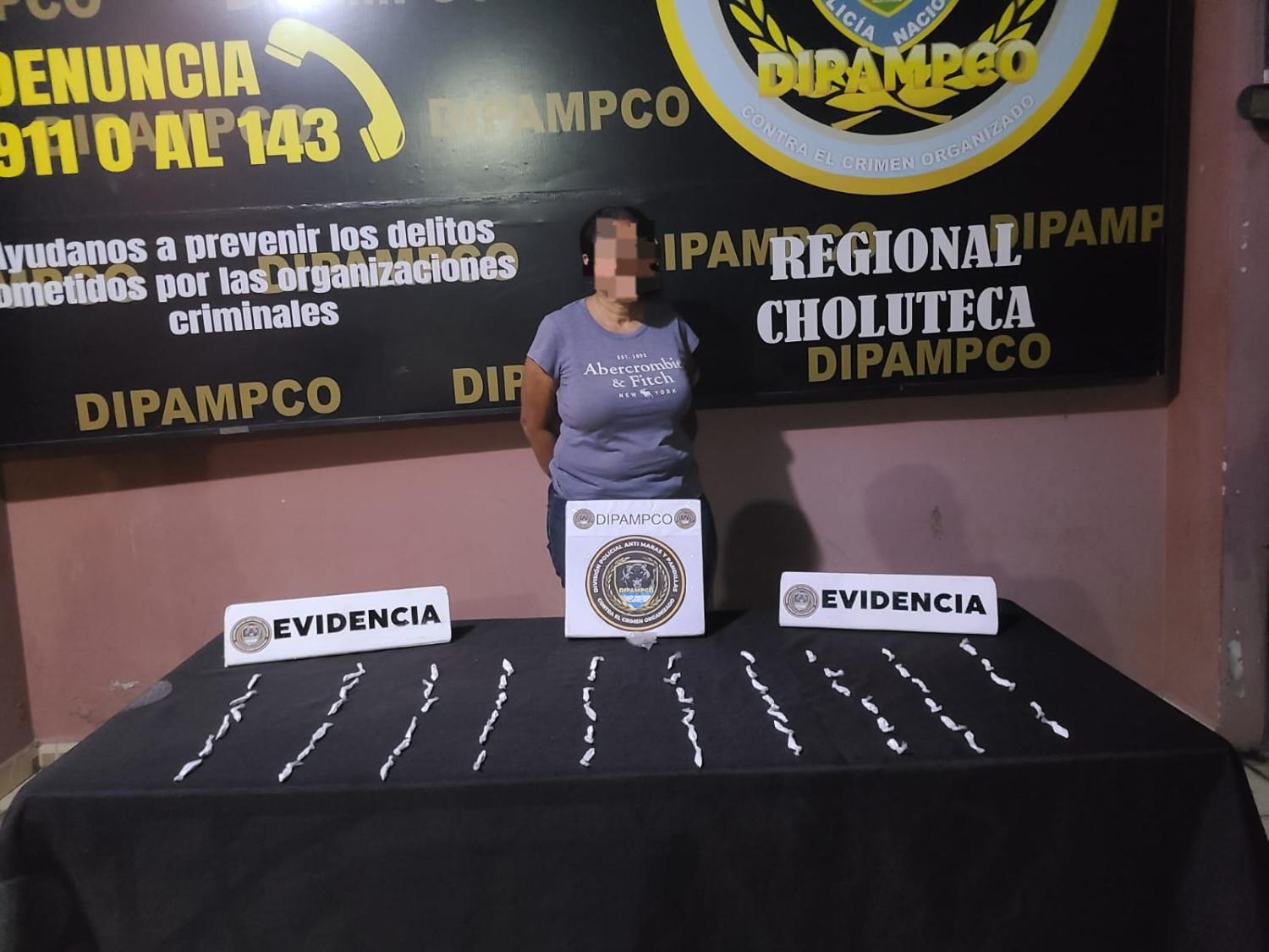 En una operación dirigida por la Dirección Policial Anti Maras y Pandillas Contra el Crimen Organizado (Dipampco), el domingo se llevó a cabo la captura de una mujer en posesión de 60 dosis de droga en el municipio del Triunfo, Choluteca.
