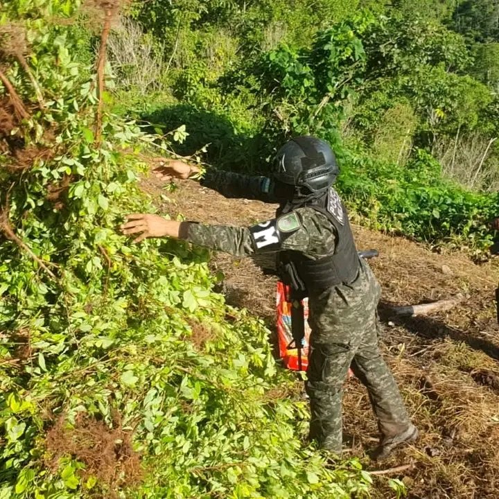 La intervención dejó el aseguramiento de aproximadamente 80 mil arbustos de coca sembrados en una hectárea equivalente a 10 manzanas.